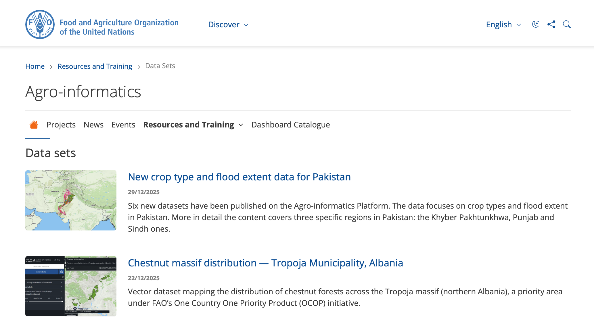 The FAO Agro-informatics Data Sets page has been recently updated with new datasets, providing valuable and reliable information to support research, analysis, training activities, and evidence-based decision-making in agriculture and food systems.
